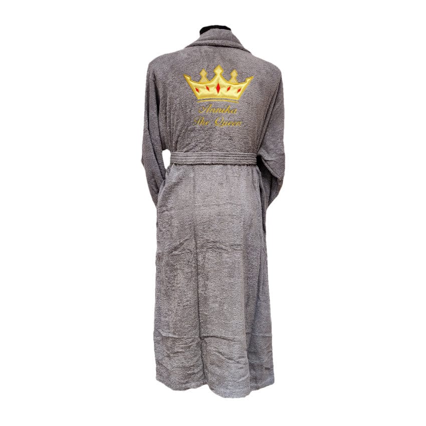 Klassisk badrock i unisexmodell, tillverkad av bomullsfrotté. Finns i två färger, grå eller vit. Badrocken har hyskor i midjan samt ett avtagbart knytband. Finns i storlekarna Small/Medium, Large/XL samt XXL.