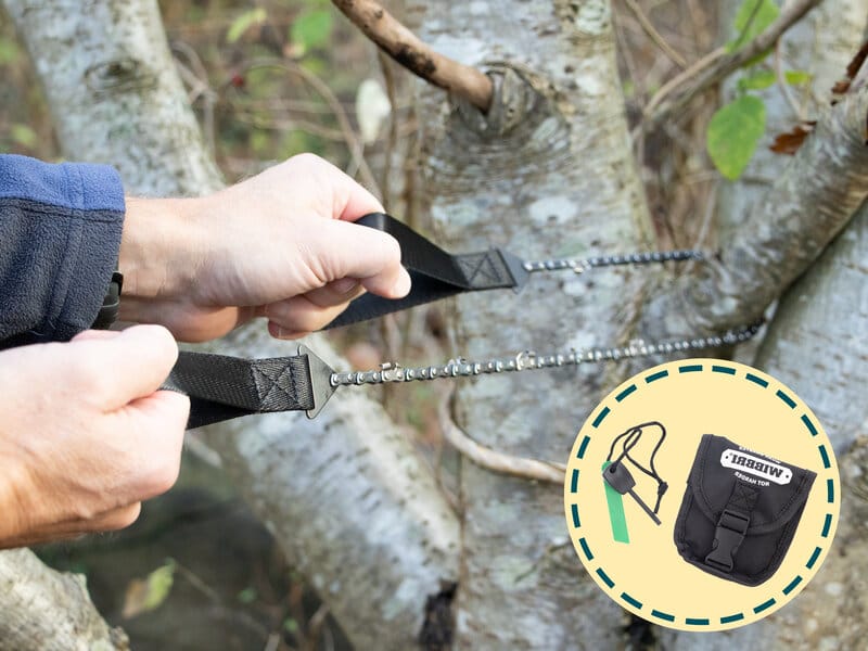 Ska du ut på tur gäller det att snabbt kunna sätta ihop ett vindskydd eller göra upp en brasa innan både kläder och humör blir sura. Med en kedjesåg i fickformat kan du smidigt såga till både stora och små grenar för friluftslivets alla projekt. Ett tändstål medföljer så att du blir klar med lägereldsfixandet på nolltid.