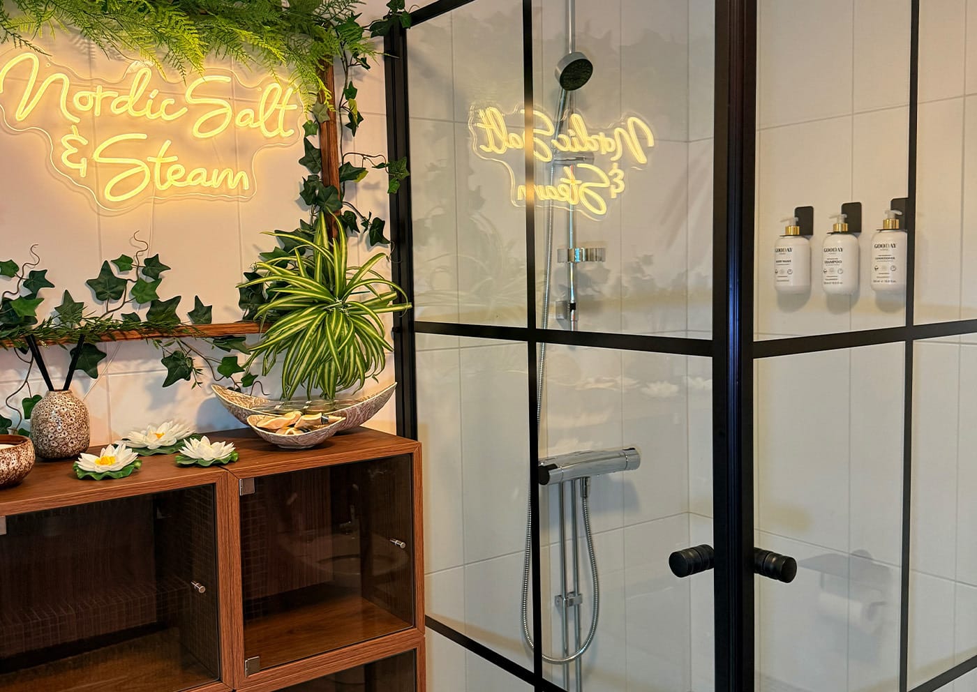 Upplev ett Himalaya saltrum med ångbastu och IR. Koppla av och njut av en timmes egentid i en privat relax.