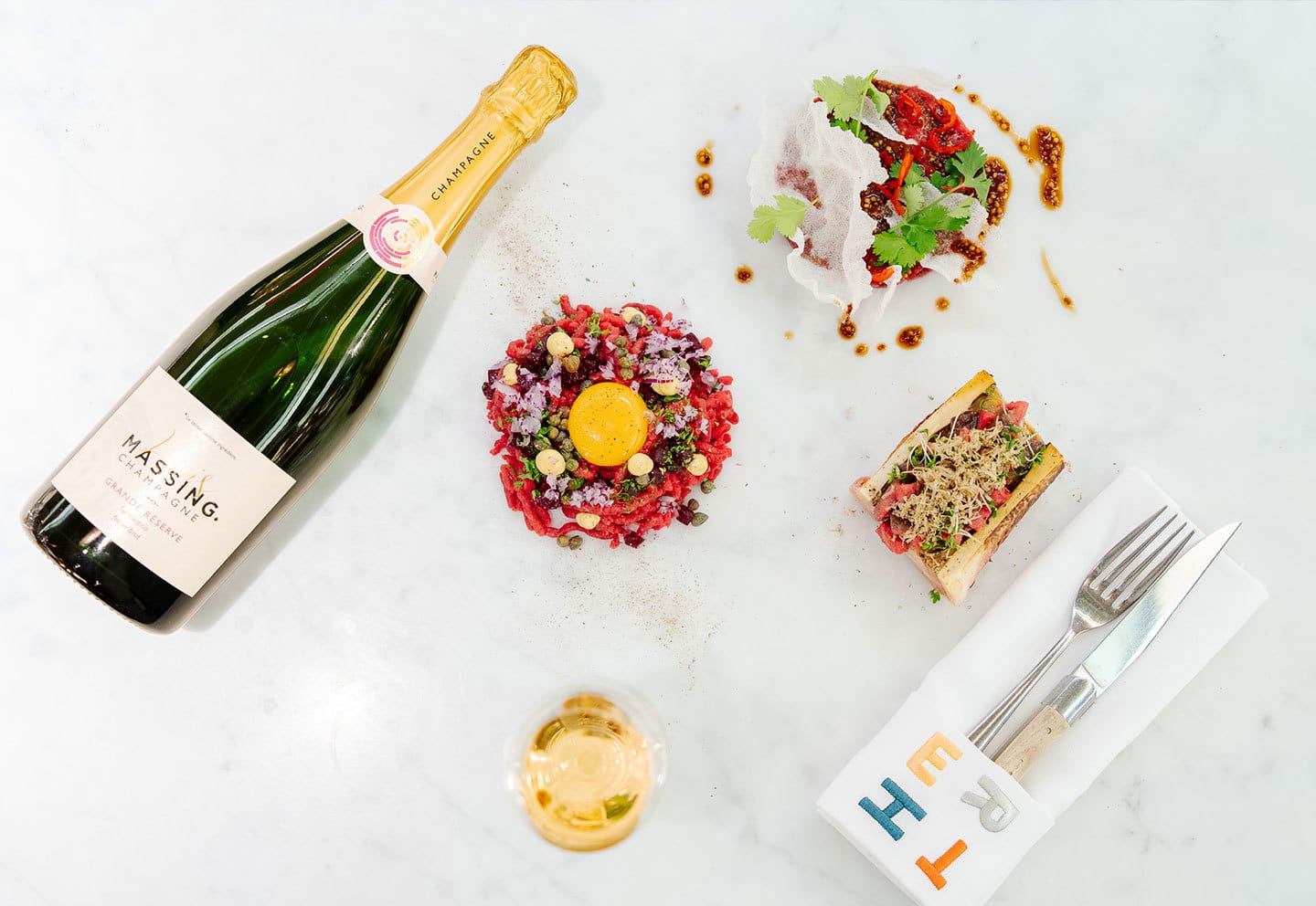Upplev riktigt kvalitetskött. Med fokus på råvarorna och hantverket serverar ERTH i Hötorgshallen en välkomponerad Råbiffprovning. Prova olika styckningsdetaljer serverade på olika sätt och i tre olika stilar. Rätterna avnjuts tillsammans med ett glas Champagne.