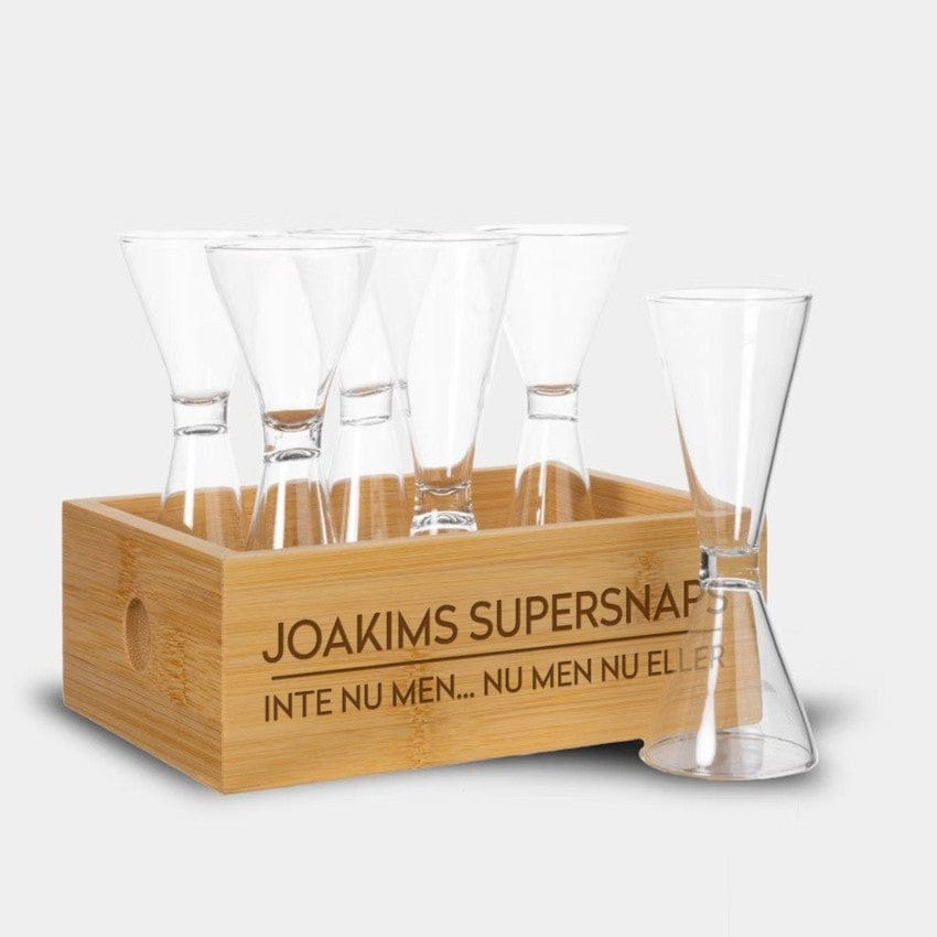 Set med 6 snapsglas och tillhörande förvaringslåda från varumärket Sagaform.