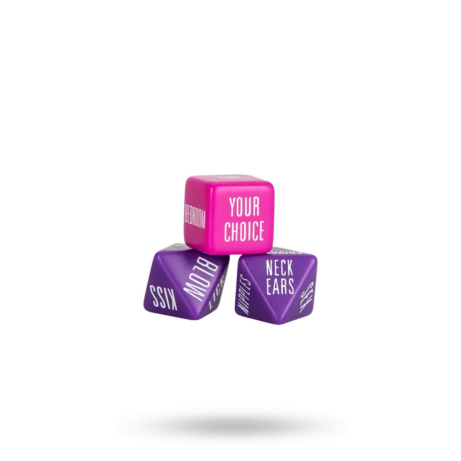 Spelet består av 3 färgade tärningar. De 2 åttkantiga tärningarna har lekfulla och upphetsande funktioner som du och din älskare kan utföra på varandra. Den klassiska fyrkantiga tärningen anger den perfekta platsen för er spontana njutning. Turas om att kasta tärningarna och följ instruktionerna i minst två minuter. Njut av att kittla tårna eller smeka privata delar tills tiden är ute. När din älskare kastar tärningen kan du slappna av och njuta av din tur att ta emot den förhöjda sensuella njutningen.